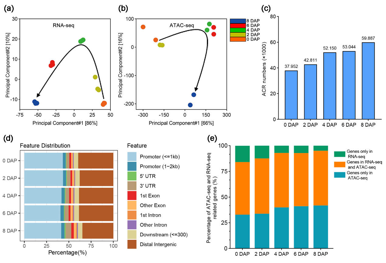 基因表达受顺式调控元件(CREs)和反式作用因子(如转录因子)协同调控。在玉米等真核生物中,CREs通常富集于染色质可及性区域(ACRs)——这些区域如同“基因开关”,其动态开放/闭合直接影响发育进程。然而,玉米种子早期发育中ACRs的变化规律仍不清楚。